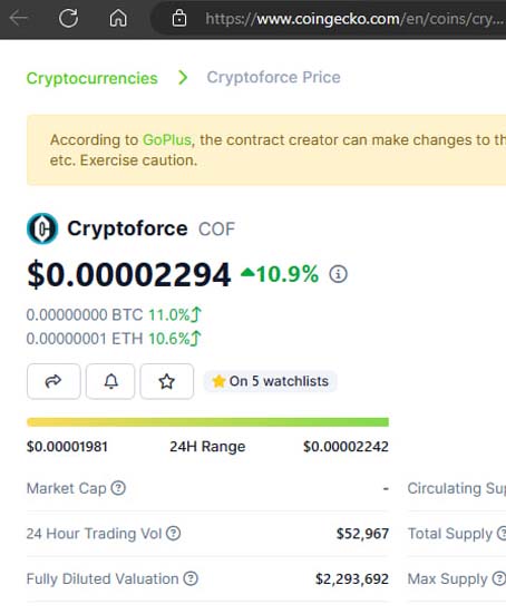 COF is the native token of Cryptoforce, used within its Play-to-Earn gaming platform. Players can earn these tokens through various in-game activities.