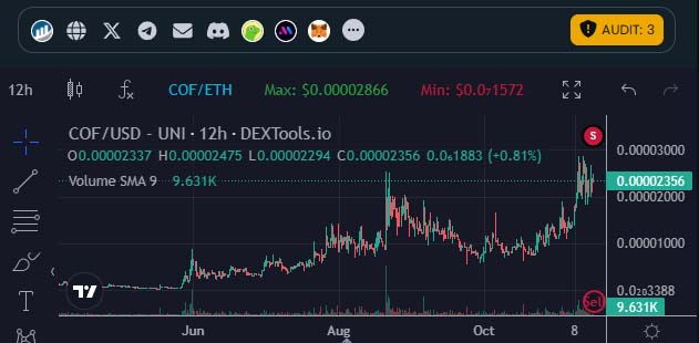 Websites like CoinGecko and DEXTools provide live price charts, trading volumes, and other relevant data for cryptocurrencies including COF.